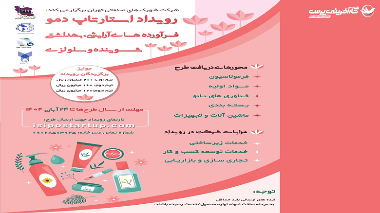 فراخوان رویداد «استارتاپ دِموی فرآورده‌های آرایشی، بهداشتی، شوینده و سلولزی» تهران